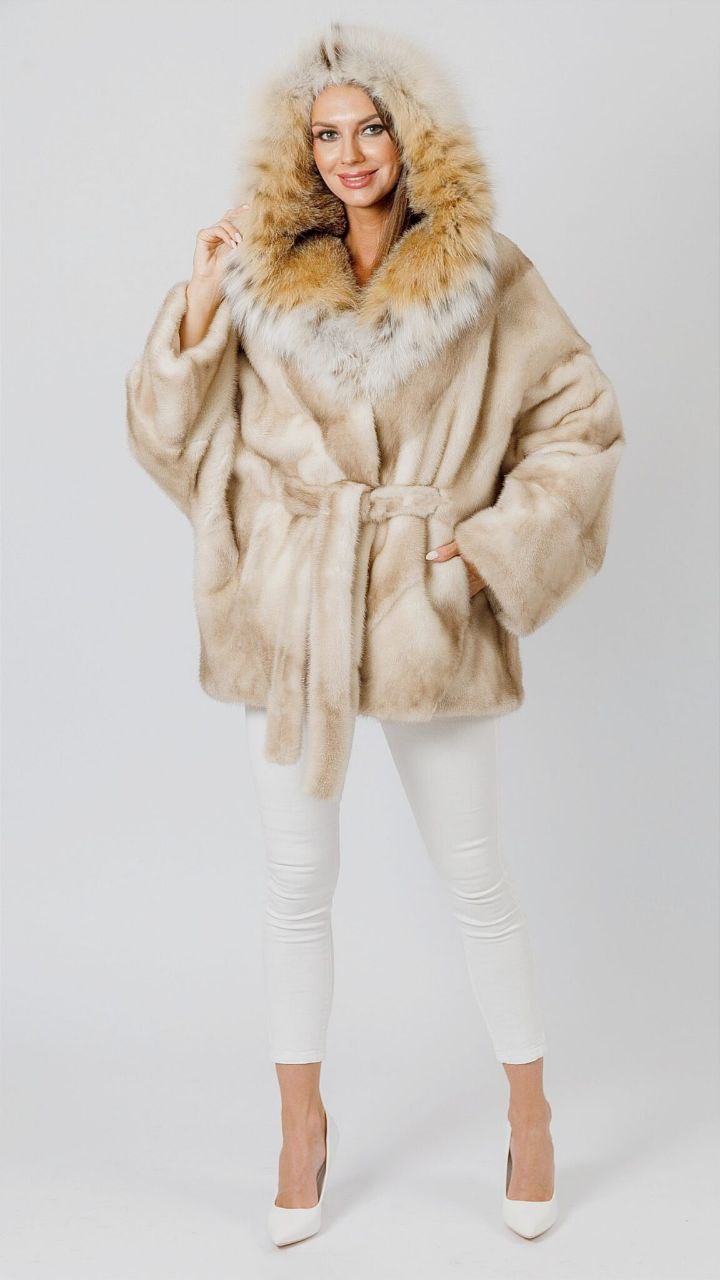 Шуба Кимоно из норки Пастель с капюшоном из меха рыси 233 000 ₽ 332 900 ₽